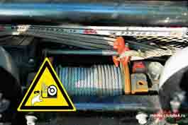 Трос на барабане должен быть смотан ровно. Ведь усилие сматывания велико, и при неровной намотке трос вполне может расплющиться о станину или бампер. А поврежденный трос уже не настолько крепок, как от него требуется.